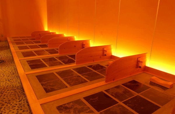 床面からの輻射熱(ふくしゃねつ)によって全身くまなく温められ、いちじるしい発汗作用をもたらしてくれるのが特徴。浴室の温度が40℃前後と比較的低温のために過ごしやすく、ダイエットや美容目的の女性ばかりではなく高齢者にも人気となりました。